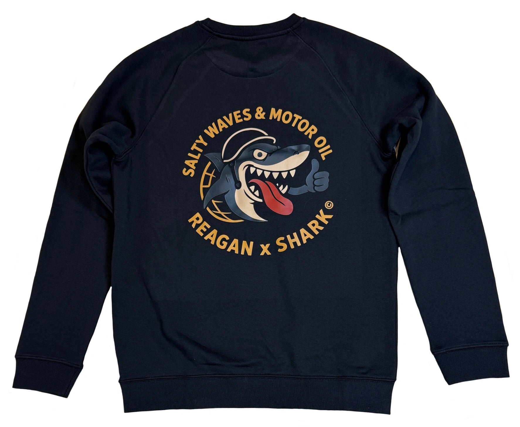 The Salty Waves & Motor Oil logo is printed big on the back just like you see in the first pic with a clean heart-side hit on the front