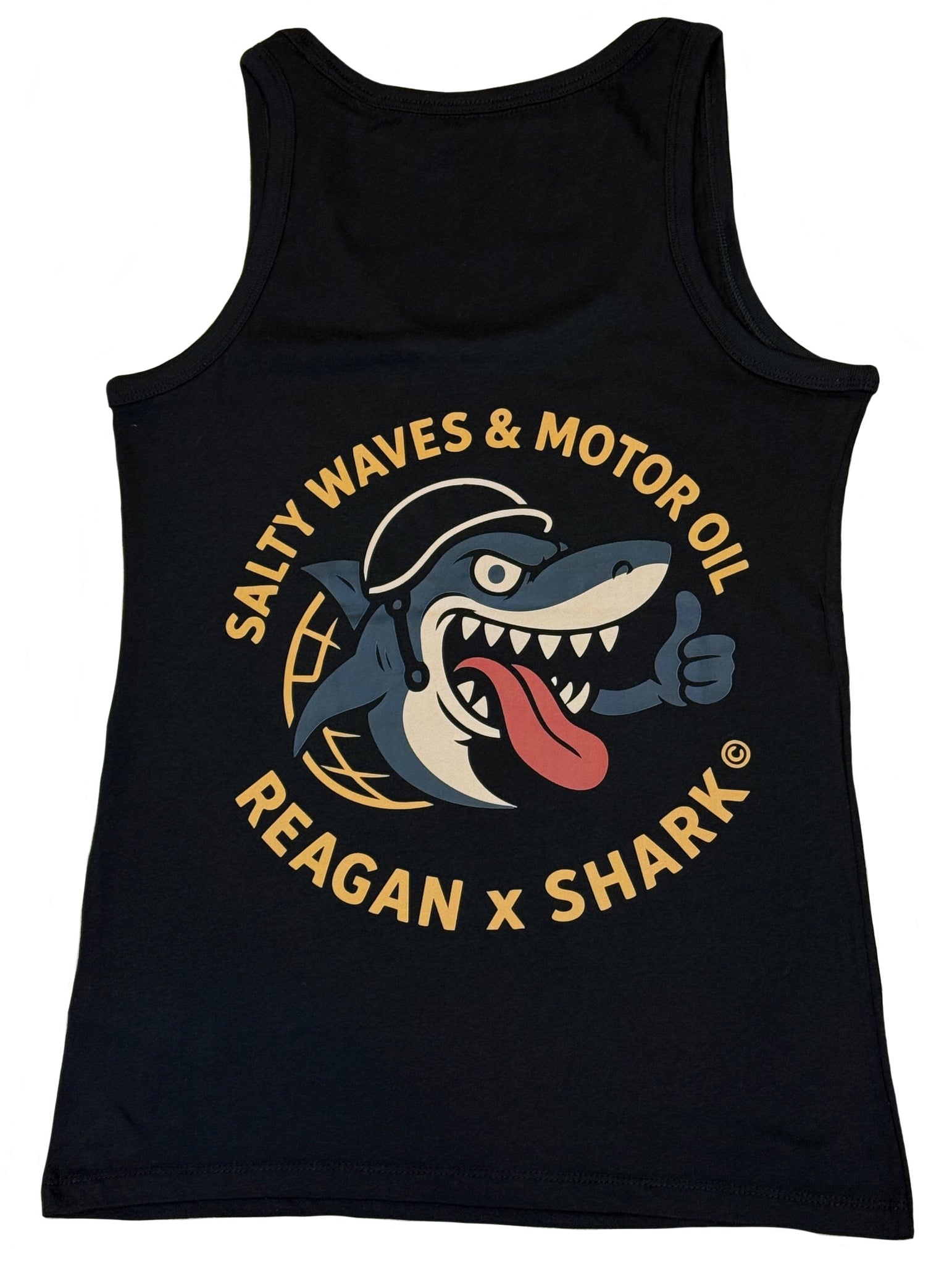 The Salty Waves & Motor Oil logo is printed big on the back just like you see in the first pic with a clean heart-side hit on the front
